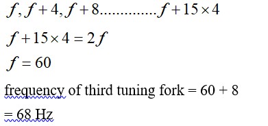 A set of 16 tuning forks are so arranged that each produce 4 beats with the previous one. If the frequency of last tuning fork is double that of first, the frequency of third tuning fork is