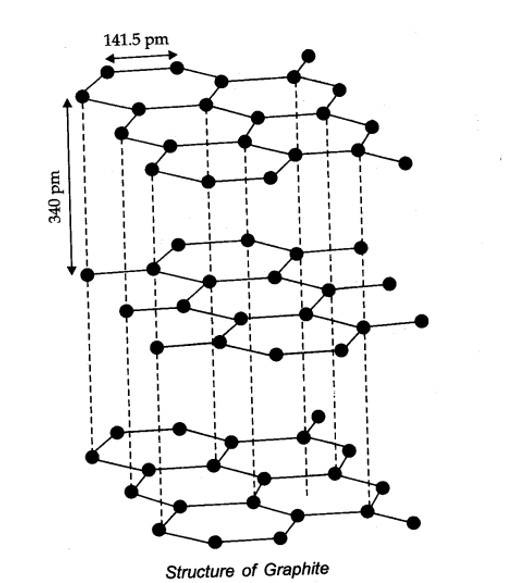 (iii) Graphite has layered structure which are held by weak van there Waals forces. Thus, graphite cleaves easily between the layers, therefore it is very soft and slippery. That